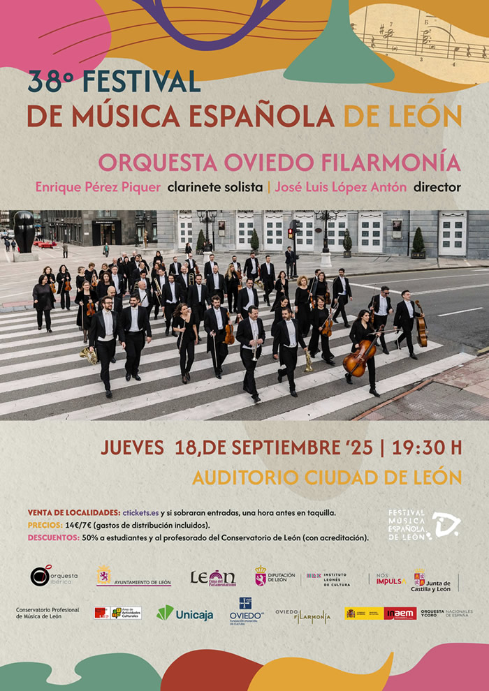 Uno de los principales objetivos del Festival es recuperar obras y compositores de gran valor artístico que han caído en el olvido. Así, la orquesta Oviedo Filarmonía se presenta por segunda vez en el Festival para interpretar en tiempos modernos “Paisaje montañés” de Rogelio Villar y estrenar “Castilla” del leonés Pedro Blanco, en la versión para orquesta de Federico Moreno-Torroba Larregla. Con la dirección de José Luis López Antón y el clarinetista Enrique Pérez Piquer en el papel de solista, el público podrá disfrutar de “Fantasía Española para clarinete y orquesta” de Julián Bautista, compositor de la Generación del 27 exiliado en Argentina.