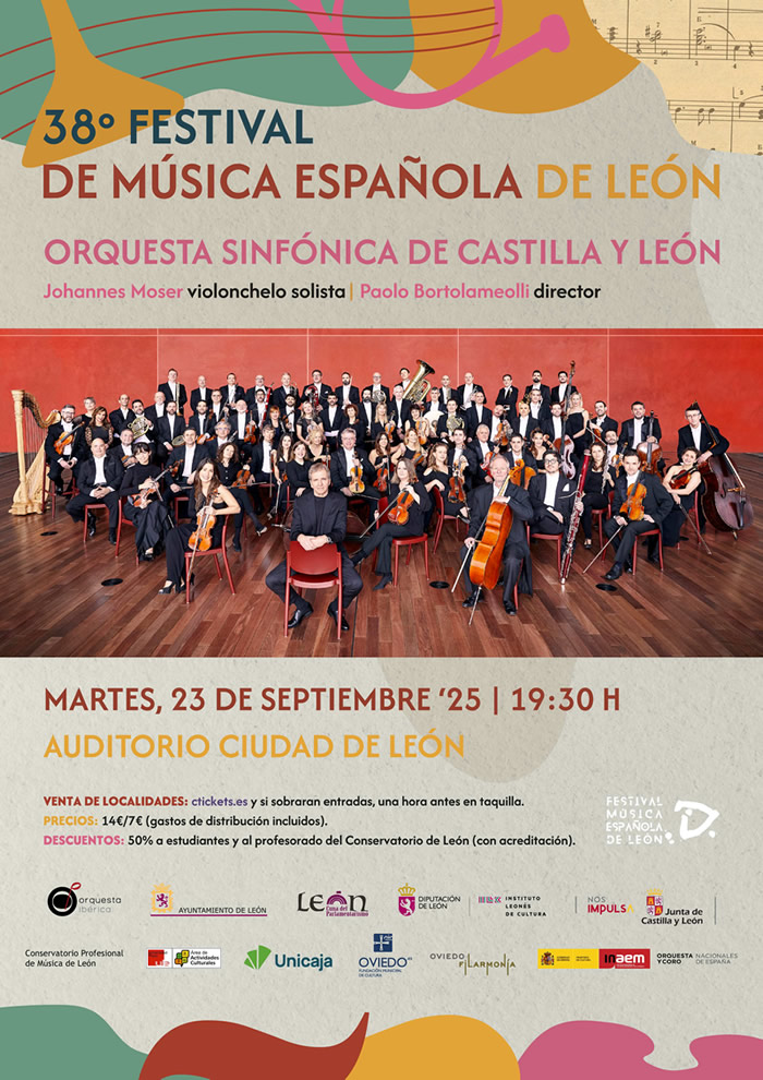 Descuento: 50% a estudiantes y al profesorado del Conservatorio de León para los conciertos del Auditorio de León (Será necesaria la acreditación para acceder a la sala)
