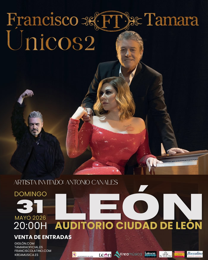 León será una de las paradas privilegiadas de este tour excepcional. Francisco, una de las voces más reconocidas y admiradas de nuestra música, y Tamara, referente absoluto del bolero contemporáneo, se unen para ofrecer un concierto de gran altura artística, cargado de sensibilidad, emoción y excelencia interpretativa.