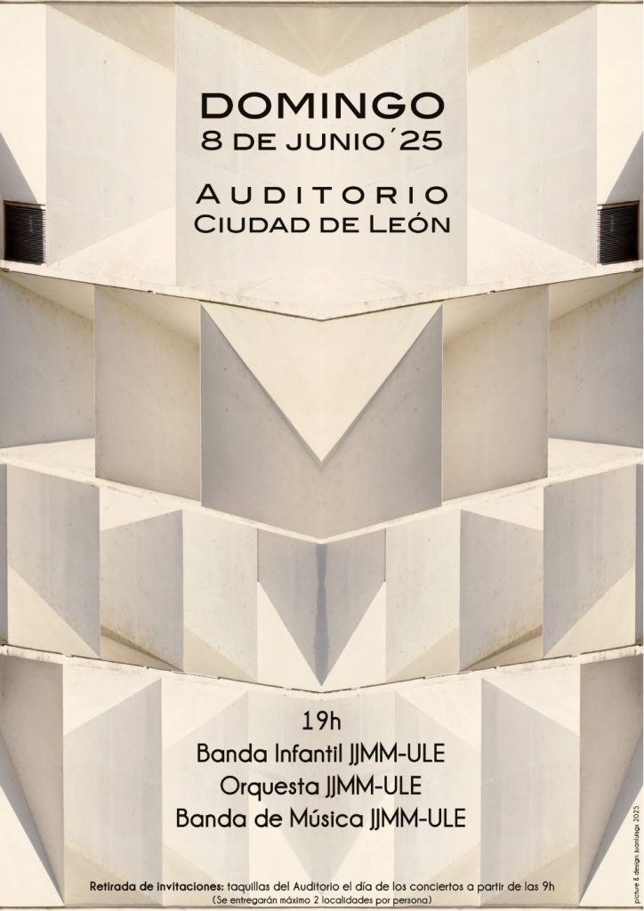 Concierto Final de Curso 2025 por la Universidad de León: Banda Infantil JJMM-ULE, Orquesta JJMM-ULE y Banda de Música JJMM-ULE.