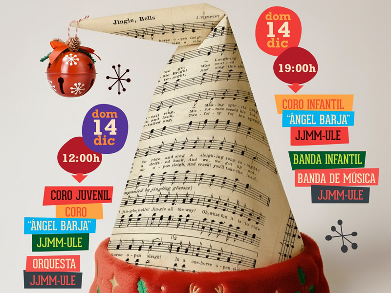 Con las actuación del CORO JUVENIL “ÁNGEL BARJA” JJMM ULE, CORO “ÁNGEL BARJA” JJMM-ULE, ORQUESTA JJMM-ULE, CORO INFANTIL “ÁNGEL BARJA” JJMM-ULE, BANDA INFANTIL JJMM-ULE y BANDA DE MÚSICA JJMM-ULE.